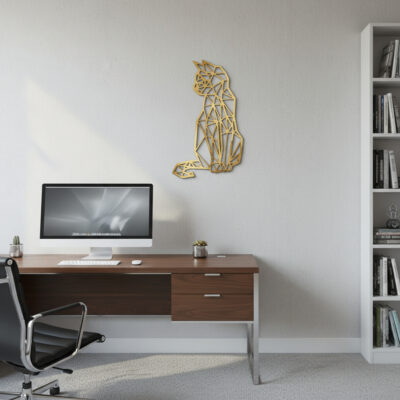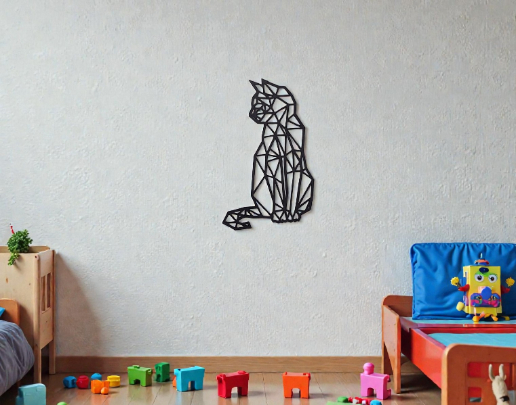 Panou Lemn de Perete Model Pisica – Artă Geometrică Modernă din Lemn