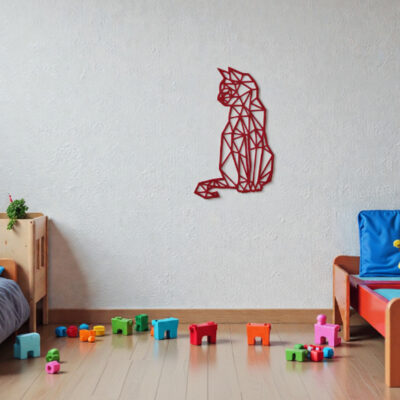 Adaugă o notă de rafinament și modernitate locuinței tale cu acest tablou geometric reprezentând silueta unei pisici. Această piesă de artă minimalistă transformă orice perete monoton într-un punct focal plin de personalitate și stil.